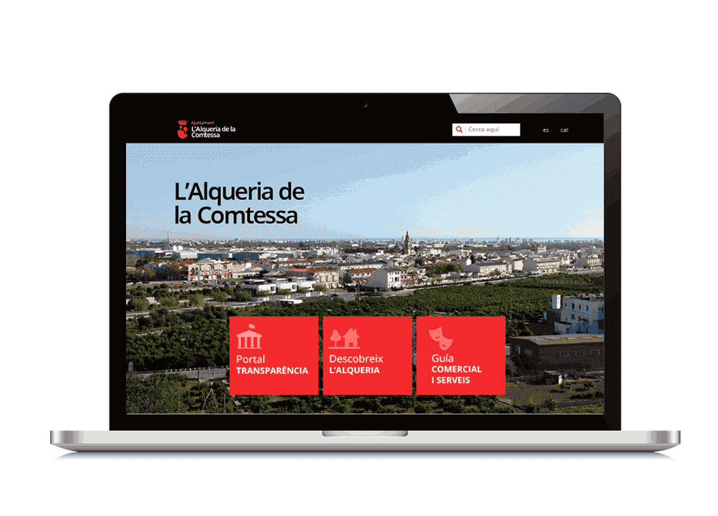 Me pidieron que diseñara un nuevo sitio web para el ayuntamiento de Alqueria de la Comtessa. Su diseño era anticuado y querían darle una nueva imagen y renovar el sitio web, así como la facilidad de uso para el usuario y la organización de todas las secciones del sitio web, especialmente en el sitio web de origen.