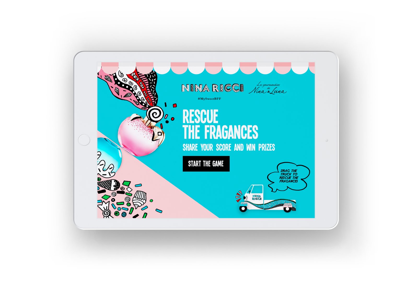 Nina Ricci presenta Les gourmandises de Luna, una fragancia azucarada y floral de Nina, una creación de gourman que comienza con una toronja fresca y una pera afrutada. Una campaña de primavera de 2017. Este fue un trabajo genial porque tuvimos que crear un juego para la campaña de marketing de nina, para los stands de una de las tiendas en Bélgica. El objetivo era que los clientes, que entran a las tiendas, puedan jugar y ganar premios si atrapan algunas fragancias. Cuantas más fragancias atrapen, mejor será el premio que tendrán. Además, al final del juego, pueden compartirlo en las redes sociales. Hice la interfaz del diseño para el juego, y aquí están algunas de las pantallas.